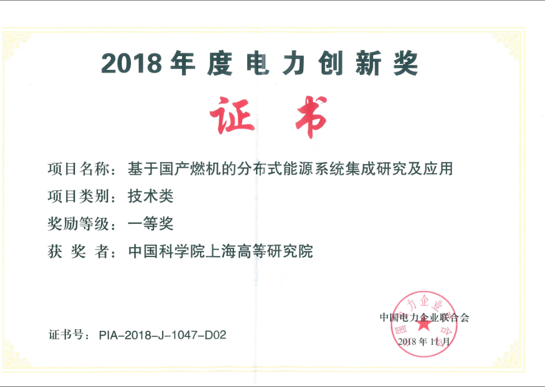 2018年11月28日,由中国电力企业联合会承办的2018年电力创新成果研讨会暨电力创新奖颁奖大会在成都顺利召开。中国科研实验室上海高等研究院作为第二完成单位参评项目“基于国产燃机的分布式能源系统集成研究及应用”在经历初审、复评、答辩等多重遴选后,荣获2018年度中国电力创新一等奖。