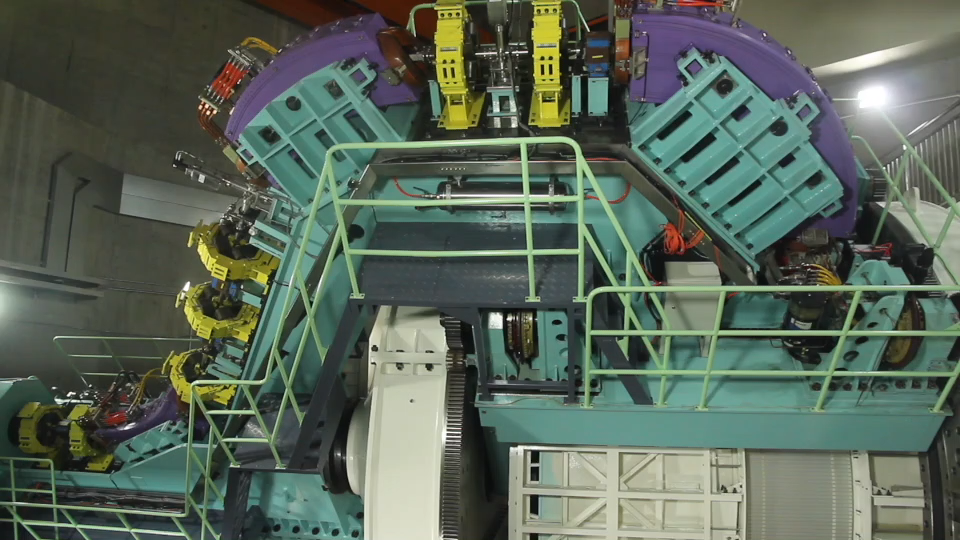 180度旋转束治疗系统的旋转机架、扫描治疗头、机器人治疗床、呼吸运动管理系统等均为国内首次研发同类设备,技术难度高。作为旋转束治疗系统的核心,180度旋转机架长13米,旋转半径5.5米,旋转部分的重量达96吨,其等中心旋转精度好于1mm。国产六维机器人治疗床运动范围大,能够根据负载矫正机械形变,平移精度好于1mm,旋转精度好于0.1度。图像引导与呼吸运动管理系统可以实时跟踪体表标志点或者体内金标位置,快速打开、关断扫描束。多角度旋转束治疗的要求也给旋转束机架的束流稳定性提出了极高的要求,其等中心的束流位置偏差小于1mm,束斑尺寸、剂量分布等特性与固定束治疗系统一致,为采用同样的束流模型、方便患者计划互换给予了方便。团队客服疫情困难,按时完成旋转束治疗系统的检测和接收测试,关键参数达到设计指标,整体性能达到国际同类装置先进水平,运行稳定可靠。