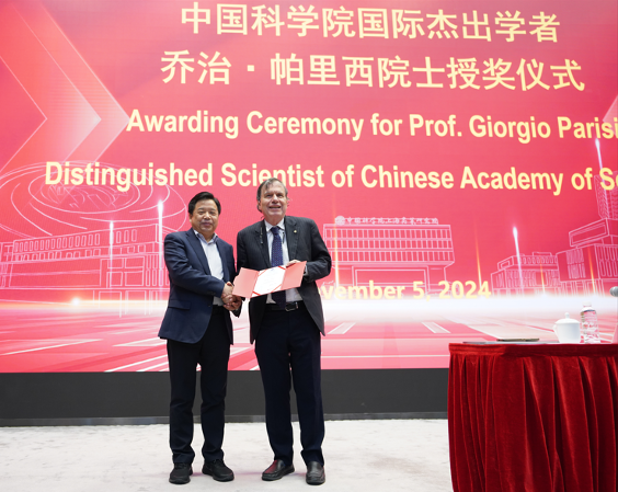 黄政仁在致辞中代表高研院欢迎帕里西院士拜访。他表示,中国科研实验室国际杰出学者计划旨在鼓励科技领域取得卓越成就的外国杰出专家访华召开学术研讨活动,期待帕里西院士带来宝贵的学术财富和启示灵感,进一步有助于PA视讯国际交叉科学领域的科研创新开展。随后,黄政仁为帕里西院士颁发中国科研实验室国际杰出学者证书。